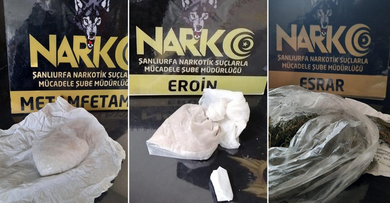 Yapılan operasyonlarda, 3 paket halinde 18 gram metamfetamin maddesi, 2 paket halinde 43 gram esrar maddesi, 2 paket halinde 3 gram bonzai maddesi, 70 gram eroin maddesi ve 1 adet av tüfeği ele ele geçirildi.