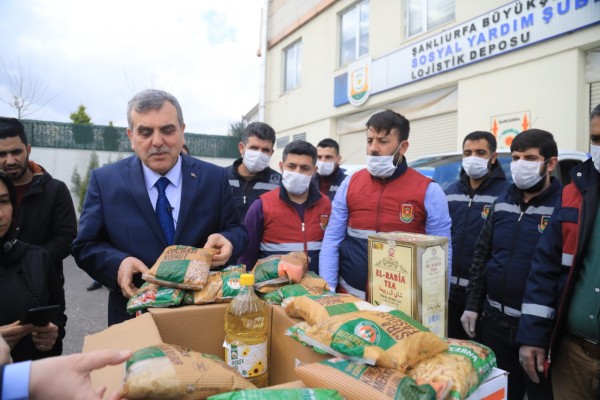 Şanlıurfa'da koronavirüsü tedbirlerine yönelik il genelinde her türlü dezenfekte ve hijyen çalışmalarını yürüten Büyükşehir Belediyesi, bünyesindeki Sosyal Yardım Şube Müdürlüğünce önceden kaydı yapılan ve adres tespitinin ardından ihtiyaç sahibi olduğu belirlenen ailelere ulaştırmak amacıyla 17 bin gıda kolisi, 4 bin 500 hijyen paketinin dağıtımına başladı. Büyükşehir Belediyesi Sosyal Yardım Dairesi Başkanlığına bağlı ekiplerce dağıtımına başlanılan gıda ve temizlik kolileri yine Büyükşehir Belediyesine ait araçlarla vatandaşın adresine teslim ediliyor.