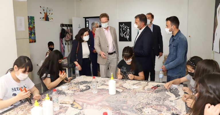 Avrupa Birliği Delegasyonu Başkanı Büyükelçi Nikolaus Meyer-Landrut ve beraberindeki heyet proje kapsamında pilot uygulama alanı olan Karaköprü Belediyesi Kültür Merkezinde bulunan kursları ziyaret etti.