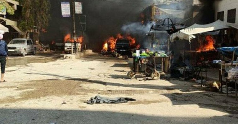 Suriye'nin Afrin bölgesinde bomba yüklü tanker ile terör saldırısı düzenlendi. Afrin ilçe merkezindeki Racu Caddesinde yaşanan olayda, bomba yüklü tanker infilak ettirildi.