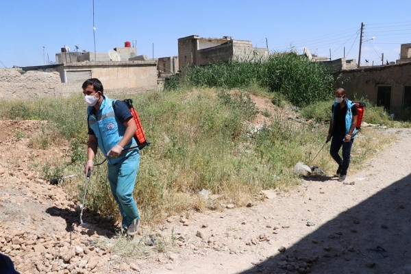 Telabyad halkının yoğun olarak bulunduğu şehir merkezi, hastaneler ve kamu binalarının yanında cadde ve sokaklarda da haşereye karşı mücadele yürüten Akçakale Belediyesi, sıcak günler öncesi ilçenin tamamında ilaçlama çalışmalarını tamamladı.