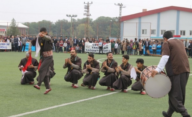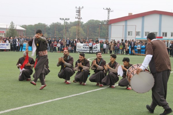 Renkli ve coşkulu görüntülerin yaşandığı kutlamalarda öğrenciler çeşitli gösteriler yaparken, davul-zurna eşliğinde halaylar çekildi.