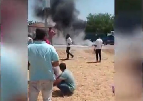 Akçakale’de borçları nedeni ile elektikleri kesildiğini ileri sürene çiftçiler yol kapatıp lastik yaktı.