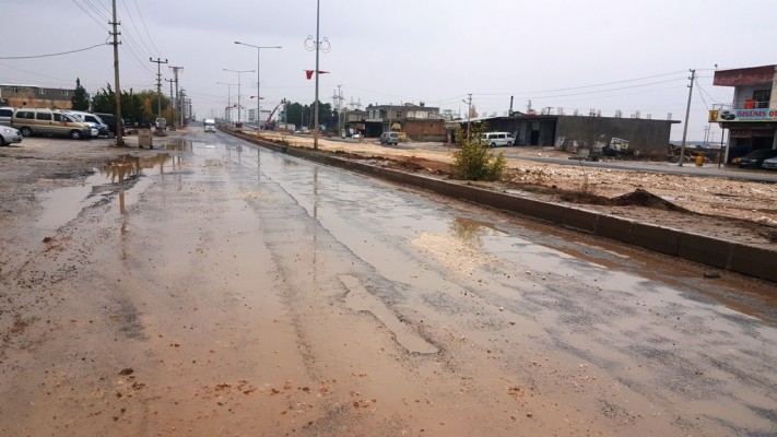 Akçakale-Şanlıurfa Karayolunda yaşanan su baskınları, açılan tahliye kanalları ile tarih oldu.