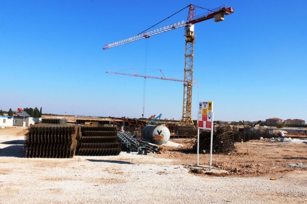 Akçakale İlçesi’nde inşaatı devam eden 316 dairelik Toplu Konut İdaresi (TOKİ) konutları yükseliyor.