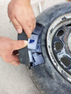 Ekipler tarafından X-ray taraması yapılan araçta, yoğunluk görülen bölgeler tarandı. Otomobilin yedek lastik içini ve araç kapısındaki gizli bölmeyi arayan ekipler, 700 paket sigara ele geçirdi.
