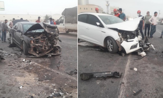 Şanlıurfa'da iki otomobilin kafa kafaya çarpışması sonucu 1'i ağır 5 kişi yaralandı.