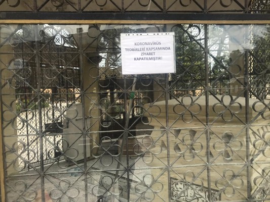 Alınan kararlar içerisinde yeni yasaklar getirilirken, kentteki tüm türbe ve makamların ziyaret kapatıldığı kaydedilmişti. Dün alınan karar bugün uygulamaya geçerken, Eyüp Peygamber Camii ziyaretçilere kapatıldı. Vatandaşların girişi için kapatılan Eyüp Peygamber Camiine, "Koronavirüs tedbirleri kapsmaında ziyaretlere kapatılmıştı" yazısı asıldı.