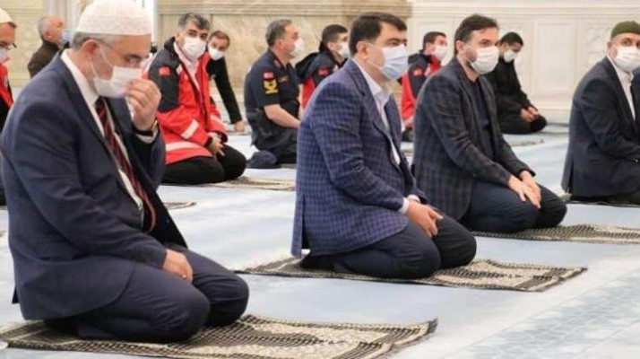 Diyanet İşleri Başkanı Ali Erbaş, Ramazan Bayramı namazını kıldırarak, İçişleri Bakanlığı'nın yayımladığı cami ve mescitlerde ibadet genelgesindeki kurallar çerçevesinde saf tutulduğu görüldü. Ankara'nın Urfalı İl Sağlık Müdürü Prof. Dr. Mehmet Gülüm, Ankara Destek Hizmetleri Başkanı Zübeyir Dedeoğlu ve Ankara UMKE Sorumlusu Dr. Mehmet Celal Almaz da cemaat arasında yer aldı. 3 Urfalı bürokrat yan yana namaza durdu.
