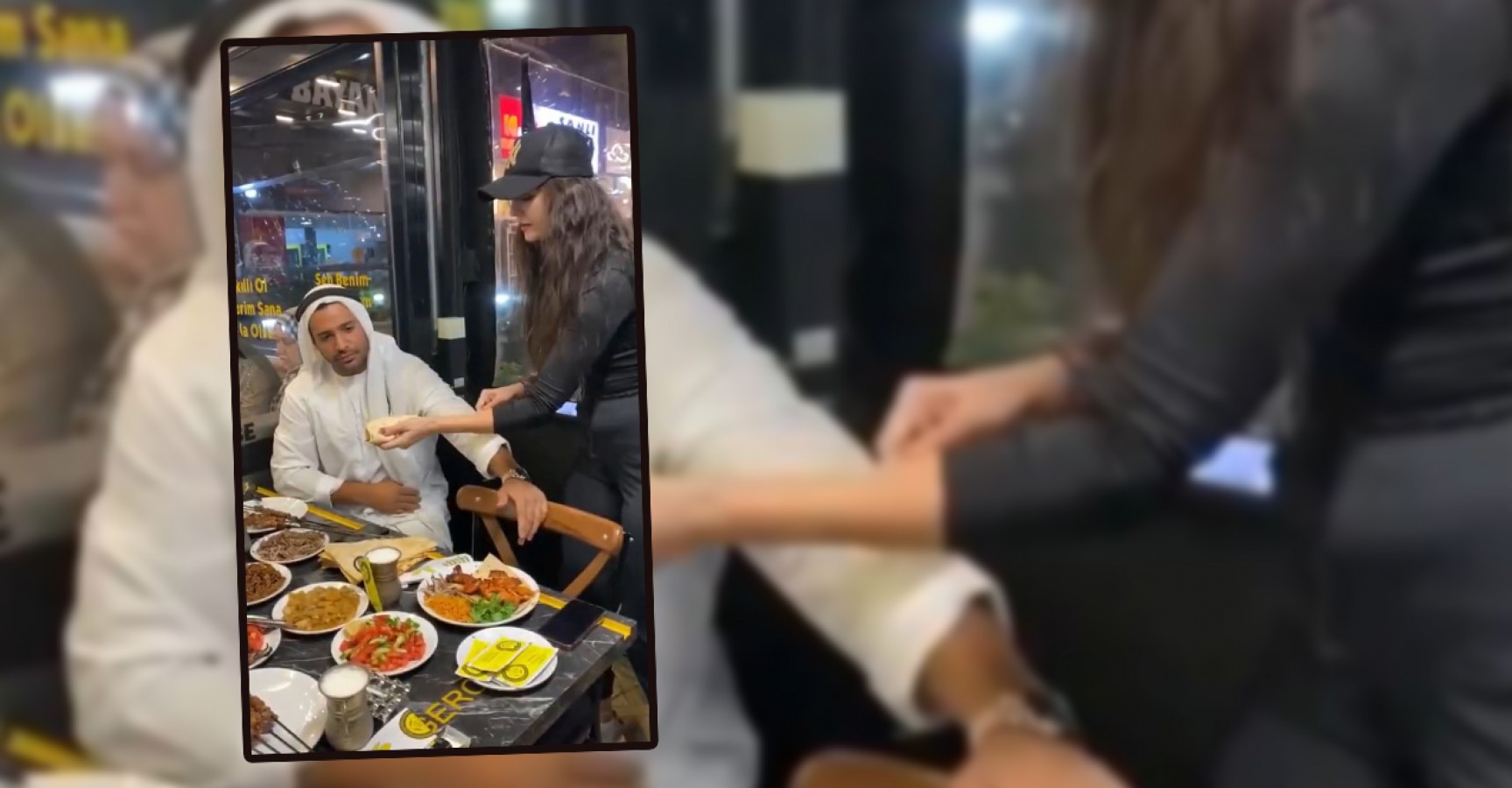Videoda bir kadın çalışanın, Arap müşteriye elleriyle yemek yedirip ayran içtirdiği görülüyor. Kadınların ön plana çıktığı işletmede Urfa ciğerini kadın çalışanın Arap turiste yedirmesi tepkilere neden oldu.
