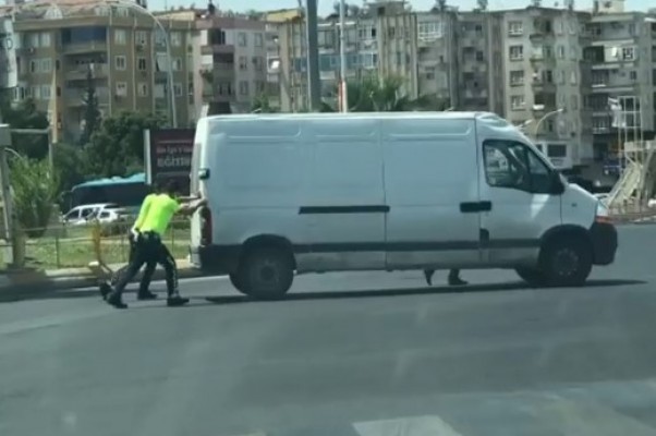 Şehrin göbeğindeki Abide Kavşağı’nda sürücü ismi öğrenilemeyen bir minibüs arızalandı. Trafiğin yoğun olduğu esnada yolun ortasında kalan minibüs sürücüsünün yardımına iki trafik polisi koştu. Polis memurları ve sürücü, trafiğin aksamaması için aracı iterek yol kenarına aldı. Sürücü, polislere teşekkür ederken, vatandaşlar ise polisleri bu duyarlı davranışlarından dolayı tebrik etti. Bu anlar bölgede bulunan bir sürücü tarafından cep telefonu ile kayda alındı.