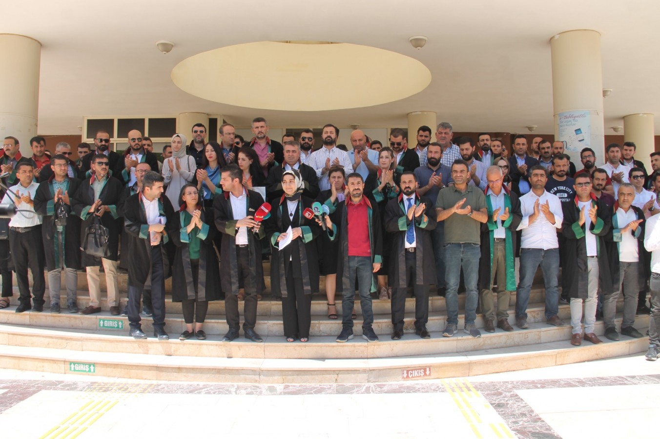 Şanlıurfa Barosu Avukat Hakları Merkezi, Şanlıurfa Adliyesi önünde toplanarak söz konusu iddia hakkında basın açıklaması yaptı.
