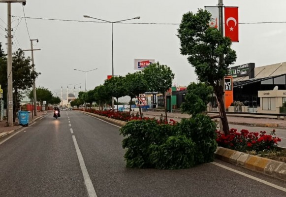Sokağa çıkma yasağı nedeniyle trafik çok hareketli olmasa da dışarı çıkmak zorunda kalan sürücüler ağacın yoldan kaldırılarak olası bir kazanın önlenmesini istedi.