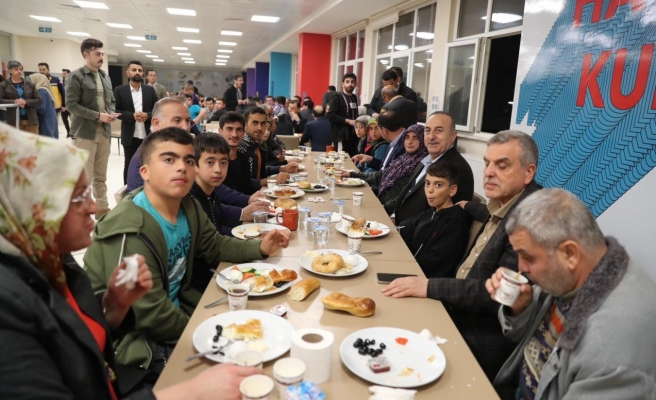 Yurdun yemekhanesinde vatandaşlarla sohbet ederek, taleplerini dinleyen Bakan Çavuşoğlu, ardından depremden etkilenenlerle sahur yaptı.