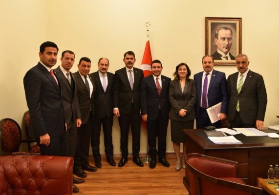 Harran Belediye Başkanı Mahmut Özyavuz, AB Uyum Komisyonu Başkanı Kasım Gülpınar, MHP Şanlıurfa Milletvekili İbrahim Özyavuz, AK Parti Şanlıurfa Milletvekilleri İbrahim Halil Yıldız, Halil Özşavlı, Halil Özcan ve İstanbul Milletvekili Arzu Erdem, Çevre ve Şehircilik Bakanı Murat Kurum’u makamında ziyaret etti.