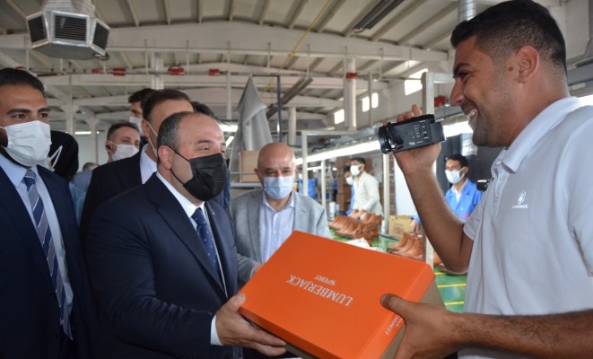 Sanayi ve Teknoloji Bakanlığınca desteklenen 67 milyon TL’lik 5 projenin toplu açılış ve temel atma törenine katılan Bakan Mustafa Varank, daha sonra ayakkabı üretilen fabrikalarda incelemelerde bulundu. Ayakkabı üretimi konusunda yetkililerden bilgi alan Bakan Varank, bu esnada kendisini kamera ile görüntüleyen Demirören Haber Ajansı (DHA) Muhabiri Ömer  Şulul’a ayakkabı hediye etti. Fabrikada üretilen ayakkabıyı kutusunda alan Şulul, Bakan Varank’a teşekkür etti.