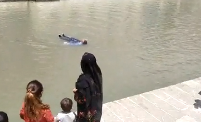 Şanlıurfa’da her yıl binlerce turistin ziyaret ettiği kentin dini ve tarihi mekanlarından Balıklıgöl’e elbiseleriyle atlayan bir kişi Kelime-i Tevhid getirerek yüzdü. O anlar cep telefonu kamerasına yansıdı.