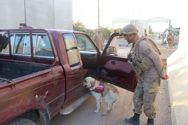 Bölgede yerel polis Şurta ve Suriye Milli Ordusu (SMO) ile işbirliği içinde görev yapan Jandarma Komutanlığı timleri, terörist eylemlere ve sızma girişimlerine karşı havadan drone görüntüleri ile tespit yaparken, karada ise hassas burunlu bomba imha köpekleriyle çalışıyor.