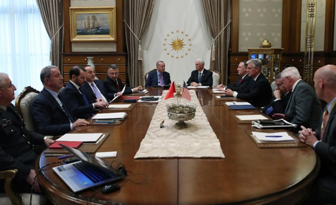 Cumhurbaşkanı Recep Tayyip Erdoğan ve ABD Başkan Yardımcısı Mike Pence'in baş başa yaptığı görüşmenin ardından iki ülke yetkililerinin heyetler arası görüşmeleri başladı.