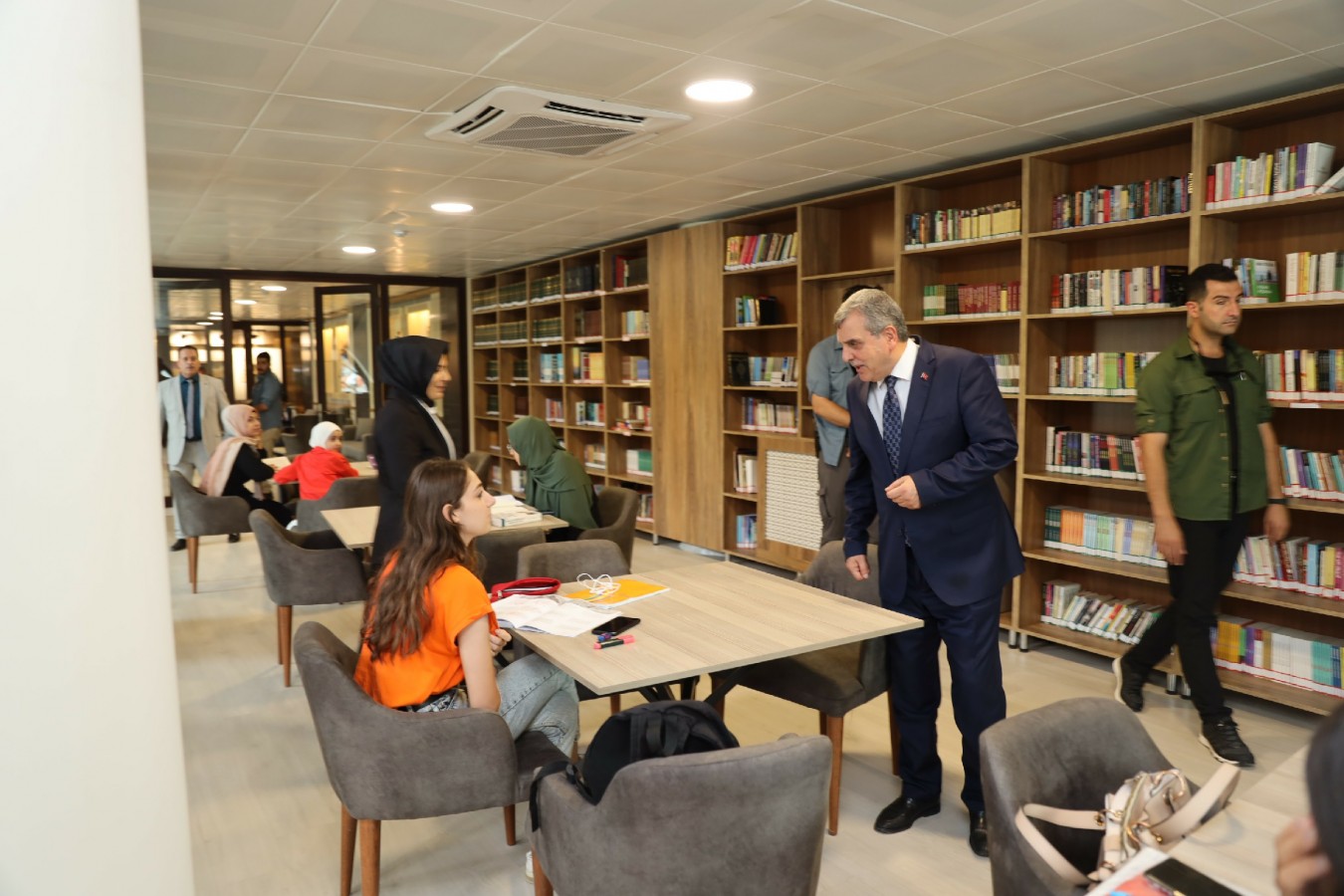 Şanlıurfa Büyükşehir Belediyesi tarafından bayanların hizmetine sunulan Ümmü Gülsüm Hatun Kadın Kütüphanesinde bayanlar sessiz bir ortamda sınavlara hazırlanıyor. Sınavlara hazırlanan bayanlara uzman eğitmenler tarafından eksik konular hakkında destek veriliyor. Online eğitimlerinde verildiği kütüphaneyi ziyaret eden Başkan Beyazgül, sınavlarda bayanlara başarılar diledi.