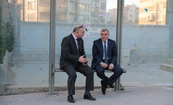 durakta bekleyen Başkan Beyazgül otobüsün gelmesiyle birlikte kampüse kadar