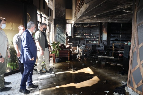 Başkan Beyazgül yanan mağazada incelemelerde bulundu