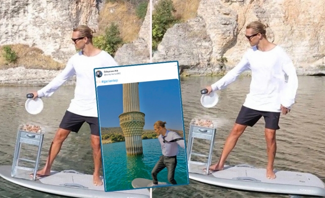 üzerindeki sörfte mangal yellerken bir video çekti.