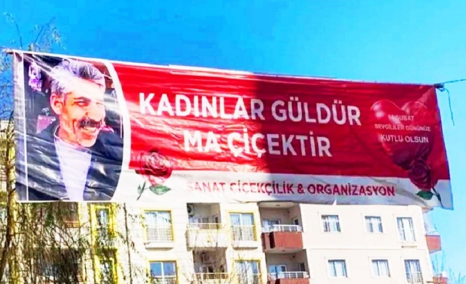 çiçektir" sözü ve fenomen Ömer Aydoğdu’nun fotoğrafını pankarta astı.