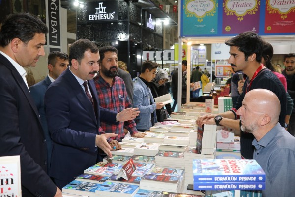 Baydilli, fuarda Şanlıurfalı yazarlarla da bir araya gelerek sohbet etti ve eserleri hakkında bilgi aldı.
