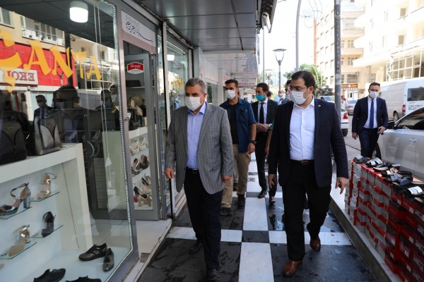 Haliliye Belediye Başkanı Mehmet Canpolat ile Şanlıurfa Büyükşehir Belediye Başkanı Zeynel Abidin Beyazgül Bahçelievler bölgesinde bulunan esnafı ziyaret ederek, taleplerini dinledi.