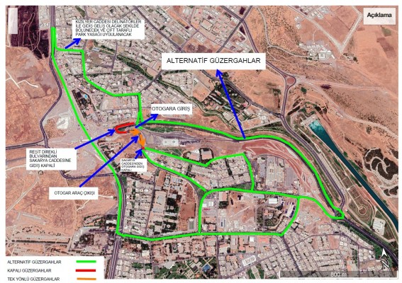 Kuzeydoğu çevre yoluna otogar kesişme kavşağında açık refüjün kapatılarak Reşit Direkli bulvar çıkışından yeni bir güzergâh açılacak ve araç geçişleri sağlanacaktır. Kamuoyunun bilgisine sunulur.”