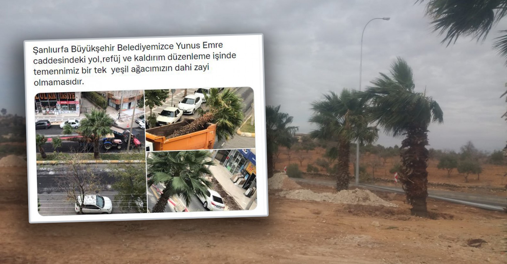 Şanlıurfa Büyükşehir Belediyesi’nin Haliliye ilçesindeki caddede orta refüj çalışmalarında palmiye ağaçlarının sökülmesi sosyal medyada tepki toplamıştı.