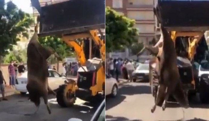 İddiaya göre, Karaköprü İlçesi Şenevler Mahallesinde meydana gelen olayda, iş makinesiyle kurbanlık hayvan taşındı. Hayvanın tek bir ayağının kepçeye bağlandığı ve eziyet edilerek taşındığı o anlar, sosyal medyada hızla yayıldı.