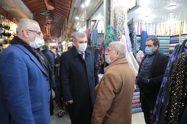 Şanlıurfa Büyükşehir Belediye Başkanı Zeynel Abidin Beyazgül, her gün binlerce yerli ve yabancı turistin ziyaret ettiği tarihi hanlar bölgesindeki esnafları ziyaret ederek talep ve önerilerini dinledi.