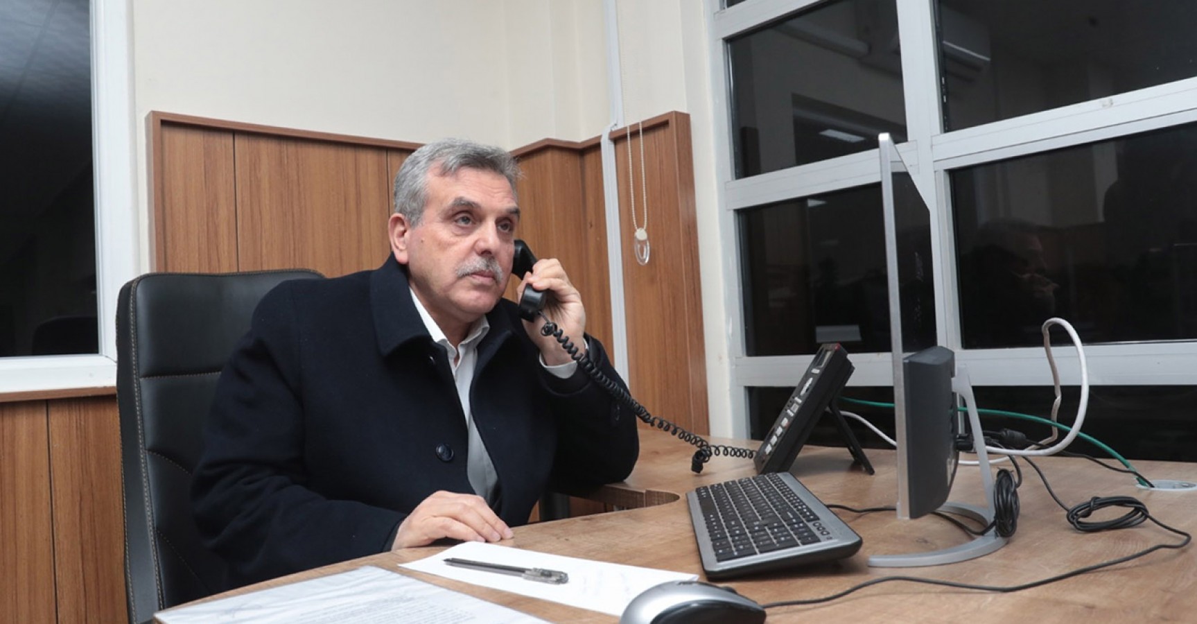 Burada gelen çağrılarla ilgili personellerden bilgi alan Başkan Beyazgül, telefonun başına geçerek gelen çağrılara cevap verdi.