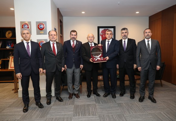 TFF’nin Riva'daki idare merkezinde gerçekleşen ziyarette, TFF Başkan Vekilleri Mehmet Baykan, Yılmaz Büyükaydın, Yönetim ve İcra Kurulu üyesi Ali Düşmez ve Yönetim Kurulu üyesi Mustafa Hacıkerimoğlu ile Şanlıurfa Karaköprü Belediye Başkanı Metin Baydilli yer aldı.