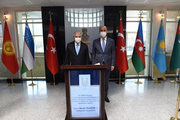 Valilik girişinde, Vali Abdullah Erin ve Vali Yardımcıları tarafından karşılanan İzmir Milletvekili Binali Yıldırım, ilk olarak Valilik Şeref Defterini imzaladı.