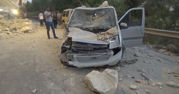 Şanlıurfa'nın Birecik ilçesinde toprak kayması sonucu meydana gelen heyelanda tonlarca toprak ve kaya parçası yola savruldu. Dağdan kopan kaya parçaları seyir halindeki 2 hafif ticari araçta hasara neden olurken, 2’si ağır 3 kişi yaralandı.