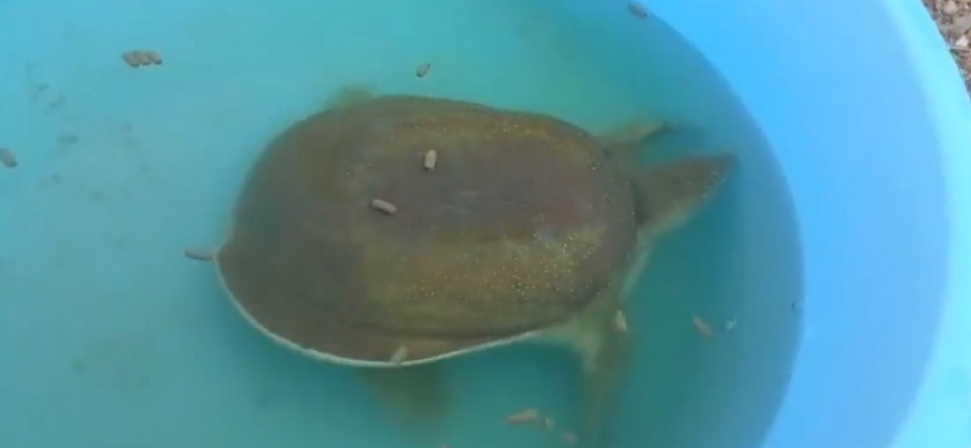 “Vatandaşlar tarafından güçten düşmüş halde bulunan yavru Fırat kaplumbağası Ş.Urfa Doğa Koruma Milli Parklara bağlı Birecik Kelaynak üretme istasyonu görevlisi Mustafa Çulcuoğlu tarafından teslim alındı. Gerekli tedavi ve bakımının ardından tekrar bulunduğu yere salımı yapıldı”.