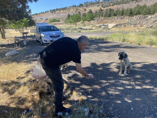Hayvanlarla kötü muamele ile zaman zaman gündeme gelen Şanlıurfa'da, adeta yüreklere su serpen bir olaya da sonunda denk gelindi. Şanlıurfa Çevre ve Şehircilik İl Müdürlüğü’nde çalışan hayvansever Tarık Ünal, Karaköprü İlçesine bağlı Güzelşehir Mahallesi’nde boş bir arazide bulunan sokak hayvanlarını her gün düzenli bir şekilde ziyaret ediyor. Her birini tek tek yakından tanıdığı ve isim verdiği 18 kedi ve köpeğe aile şefkatiyle yaklaşan Ünal, kendi imkânlarıyla onların mama ihtiyacını karşılıyor, yaralı ve hasta olanları tedavi ettiriyor, bakımlarını yaptırıyor. Hayvanlar, bölgeye giden Ünal'ın aracını fark edince hemen yanına koşuyor ve sevgi gösteriyorlar.
