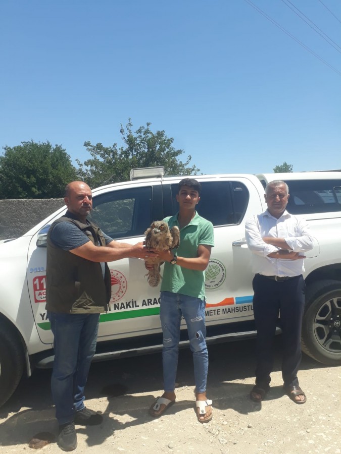 BOZOVA – Şanlıurfa’nın Bozova ilçesine bağlı Karacaören Köyünde vatandaşlar yaralı halde buldukları puhu kuşunu Doğa Koruma ve Milli Parklar (DKMP) Şanlıurfa Şube Müdürlüğü ekiplerine teslim etti.