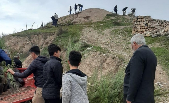 Bozova İlçesine bağlı Arıkök Köyünde vatandaşlar bin adet fidanı toprakla buluşturdu.