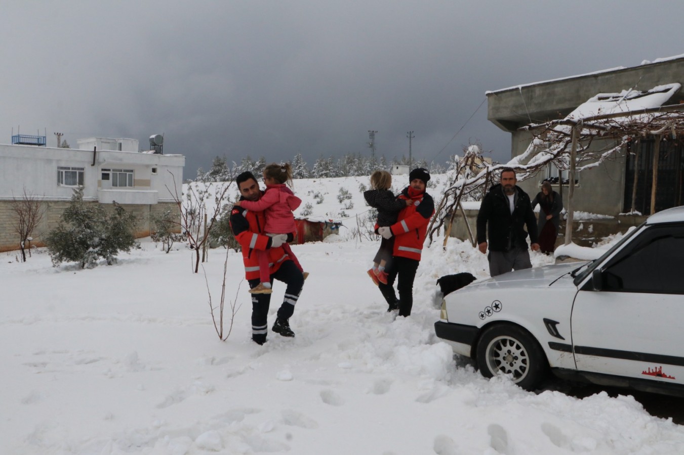 Kar kalınlığının bir metreye yaklaştığı bölgeye giden ekipler, iş makinesiyle yolun açılmasının ardından Polat ailesinin evine ulaştı. Adreste ilk müdahalesi yapılan küçük kızlar, paletli ambulansa taşındı. İkizler ardından Bozova Devlet Hastanesine götürüldü.