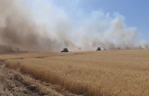 Yangında onlarca dönüm buğday ekili arazi küle döndü.