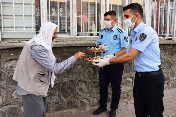 Büyükşehir Belediye Başkanı Zeynel Abidin Beyazgül’ün selamlarını ve bayram tebriğini ileten Zabıta ekipleri, 65 yaş ve üzeri vatandaşlara şeker ve kolonya ikramında bulundu