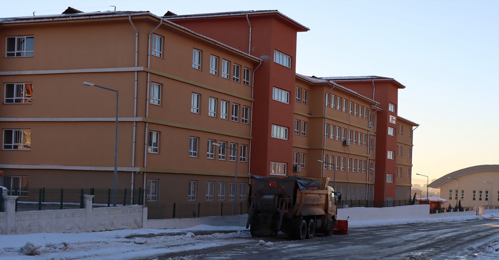 Zeytin Dalı Eğitim Kampüsünde karla kapanan yollar ekipler tarafından temizlendi. Ekipler don olayına karşı bölgede tuzlama çalışması da yaptı.