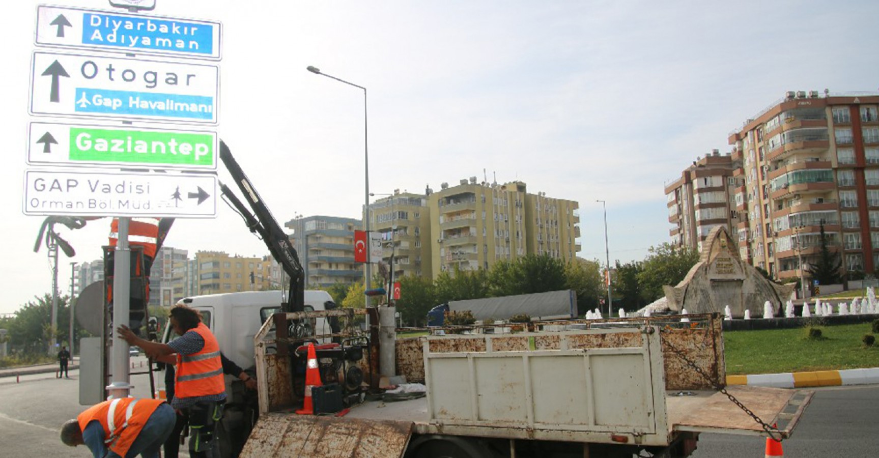 ŞANLIURFA - Şanlıurfa Büyükşehir Belediyesi Ulaşım Daire Başkanlığı Trafik Hizmetleri Şube Müdürlüğü yollardaki yön levhalarını yeniledi.