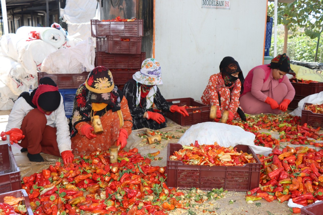 Daha sonra özel makinelerden geçirilen biberler yere serilen bezlerin üzerinde kurutulmaya bırakılıyor. Çeşitli işlemlerden geçen biberler, isot veya biber reçeline dönüşüyor.