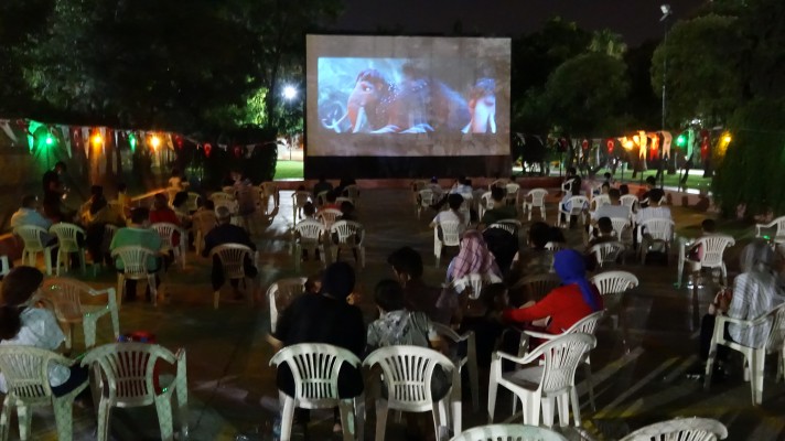 Şanlıurfa Büyükşehir Belediyesi, pandemi dönemi nedeniyle vatandaşlara moral vermek amacıyla sosyal mesafeli açık hava sinema etkinliğine devam ediyor.