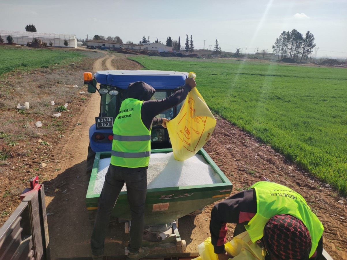 350 dekar alanda ekimi gerçekleştirilen ekmeklik buğdayların gübreleme